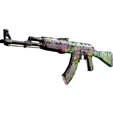 Powerful and reliable, the AK-47 is one of the most popular assault rifles in the world. It is most deadly in short, controlled bursts of fire. It has been custom painted with a “HEAD SHOT GUN” graffiti and finished with pearlescent coating.