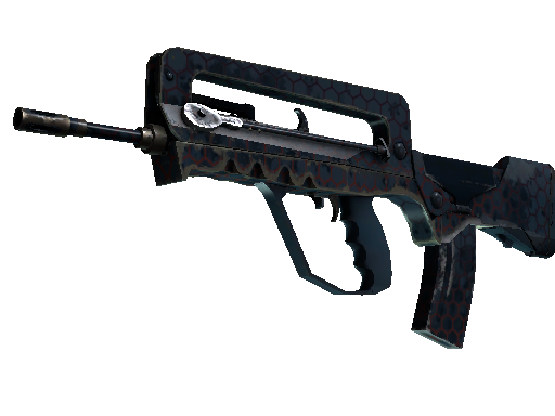 A cheap option for cash-strapped players, the FAMAS effectively fills the niche between more expensive rifles and the less-effective SMGs. It has been painted using a hexagon patterned hydrographic.