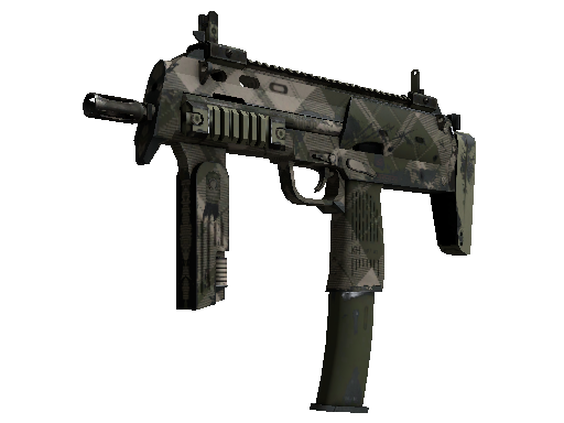 Versatile but expensive, the German-made MP7 SMG is the perfect choice for high-impact close-range combat. It has been painted with a hydrographic in a beige and olive green plaid pattern.
