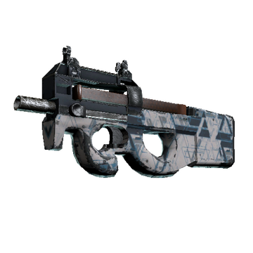 Easily recognizable for its unique bullpup design, the P90 is a great weapon to shoot on the move due to its high-capacity magazine and low recoil. A multicolored pattern of an isometric grid has been applied.