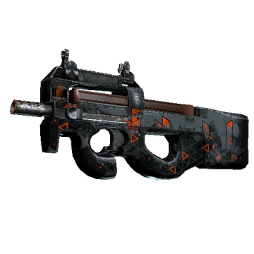Easily recognizable for its unique bullpup design, the P90 is a great weapon to shoot on the move due to its high-capacity magazine and low recoil. It has been custom painted in contrasting orange, grey and black.