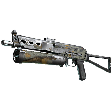 The Bizon SMG is low-damage, but offers a uniquely designed high-capacity drum magazine that reloads quickly. It has been painted using a photographic hunting camo hydrographic.