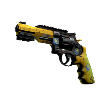 The R8 Revolver delivers a highly accurate and powerful round at the expense of a lengthy trigger-pull. Firing rapidly by fanning the hammer may be the best option when point-blank stopping power is required. It has been custom painted to resemble a very ripe banana.