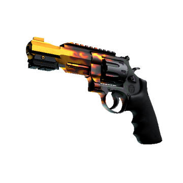 The R8 Revolver delivers a highly accurate and powerful round at the expense of a lengthy trigger-pull. Firing rapidly by fanning the hammer may be the best option when point-blank stopping power is required. It has been painted by airbrushing transparent paints over a chrome base coat.